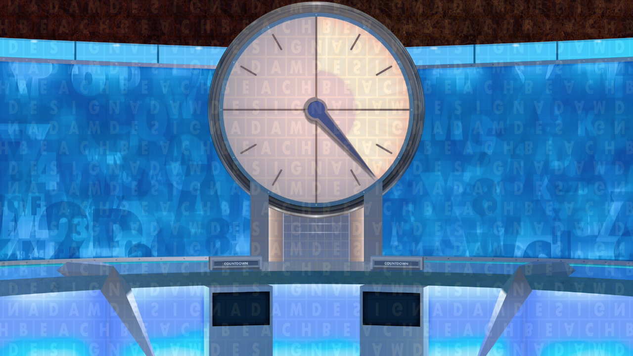 The Countdown clock was refurbished in line with the makeover, with changes including new chrome and marble finishes around the edges, and a metallic grid panel being installed in the centre of the pedestal to add definition by reflecting the studio lighting.